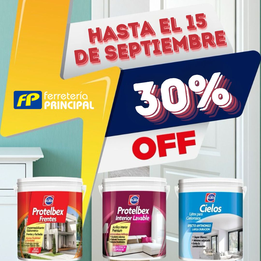 La primavera está a la vuelta de la esquina, y queremos ayudarte a darle un nuevo color a tu hogar. Por eso, hasta el 15 de septiembre, podes disfrutar de un 30% de descuento en nuestra línea premium de pinturas Elbex. 🎨✨